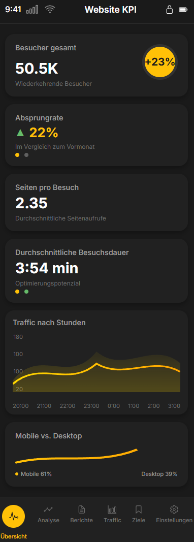 Wir entwickeln Websites handy-fokussiert, die sich anfühlen wie native Apps. So nutzen Ihre Kunden Ihre Online-Präsenz intuitiv und nahtlos auf jedem Smartphone. Mobile First Design garantiert perfekte Darstellung und einfache Bedienung. Ihre Website – direkt auf dem Homescreen, mit dem Gefühl einer eigenen App.